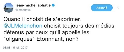 Jean-Michel Aphatie ou leur transcription en 140 signes sur Twitter. »